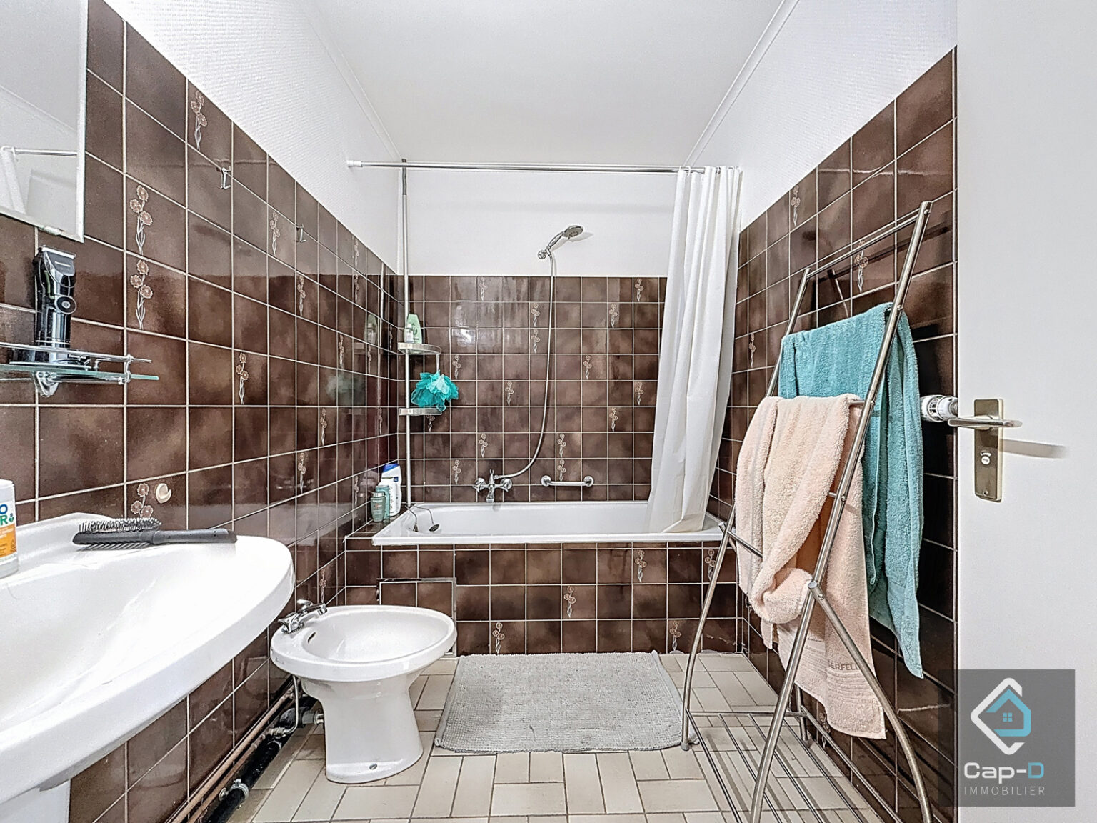 Salle de bains carrelée (lavabo, bidet, baignoire) : 2,63 x 1,69 m – 4,44 m²